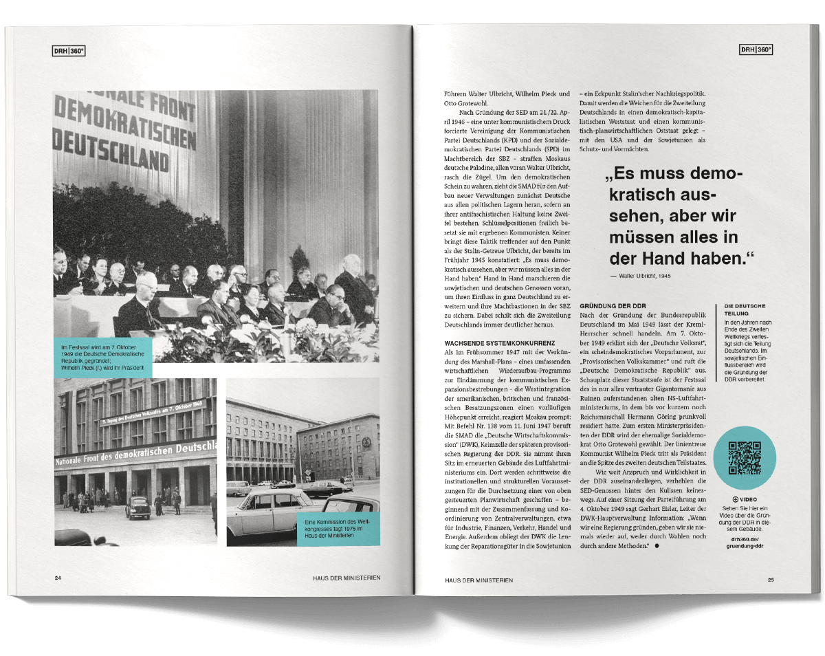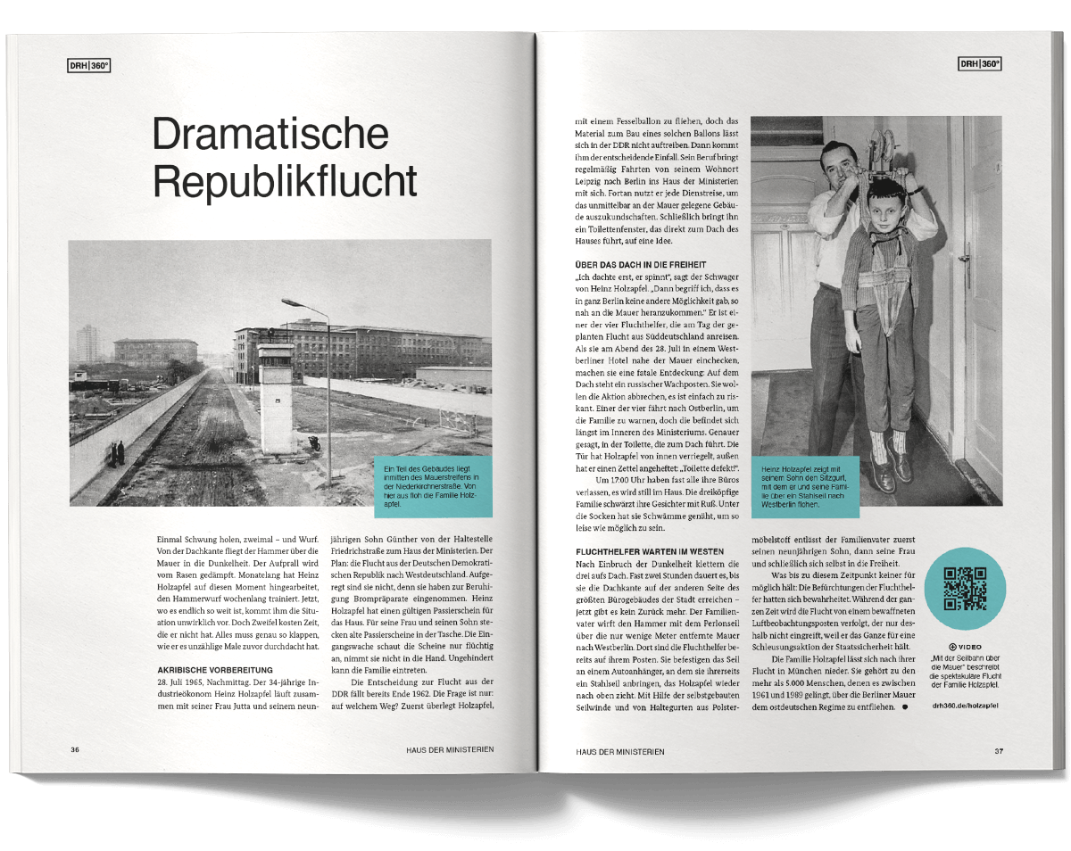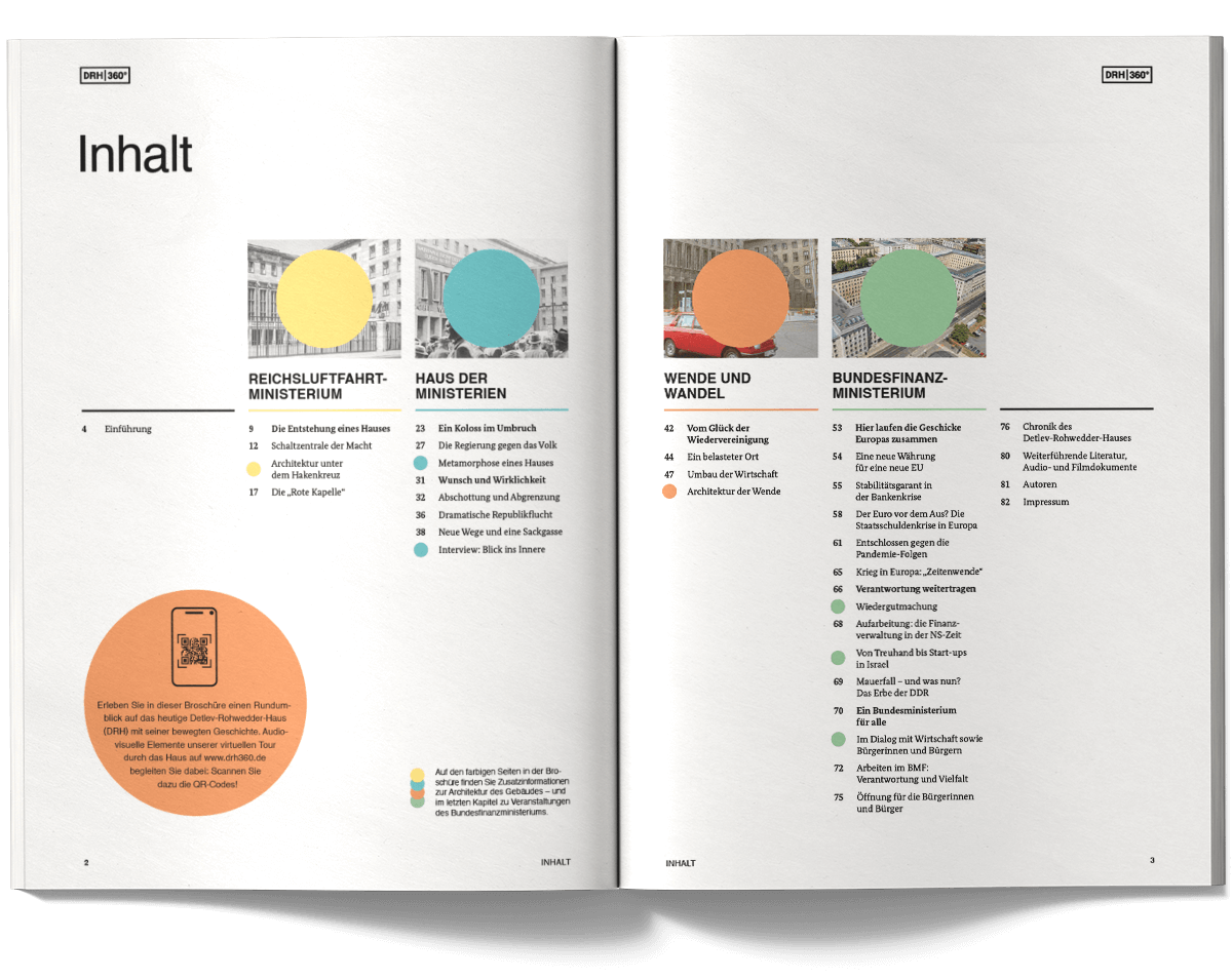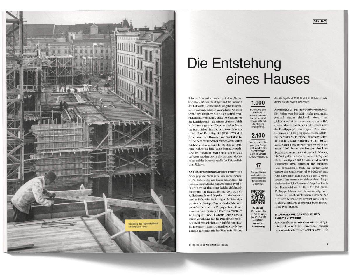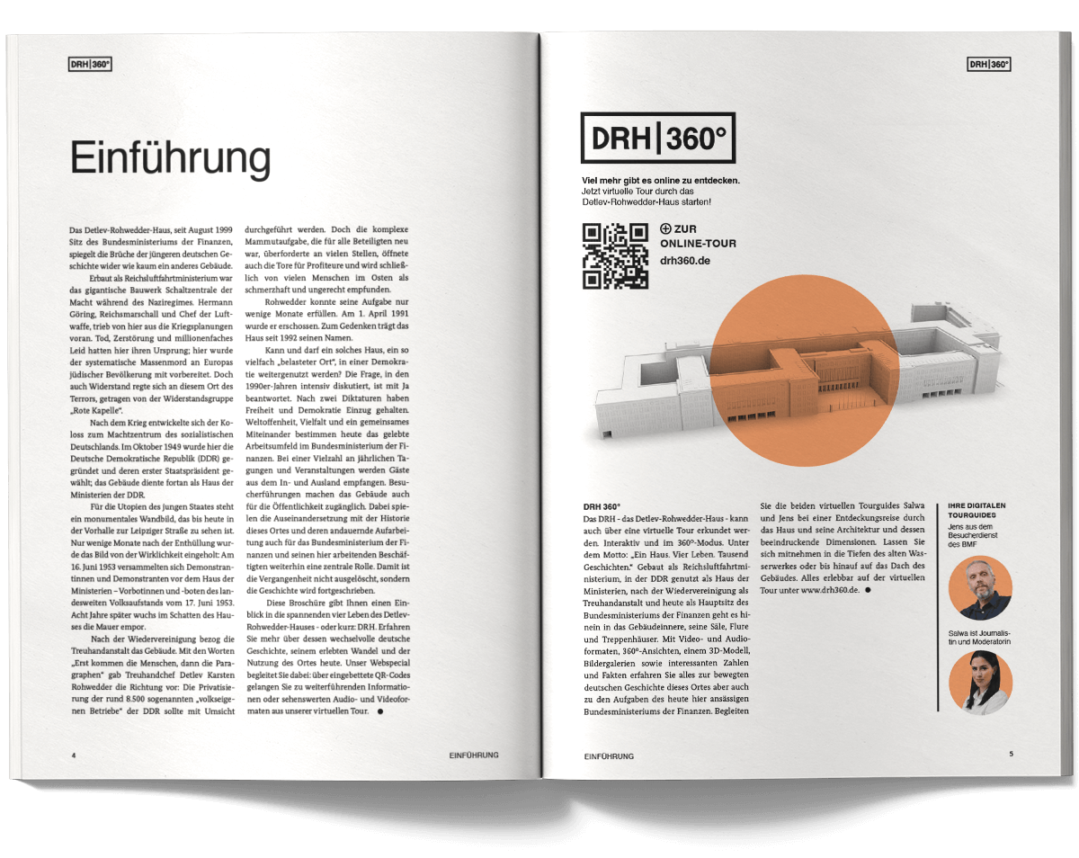 The project involved the relaunch of a single, cohesive brochure that documents the building’s past and present. The publication spans 82 pages across four chapters, translating a complex and sensitive historical narrative into a clear, contemporary editorial format.